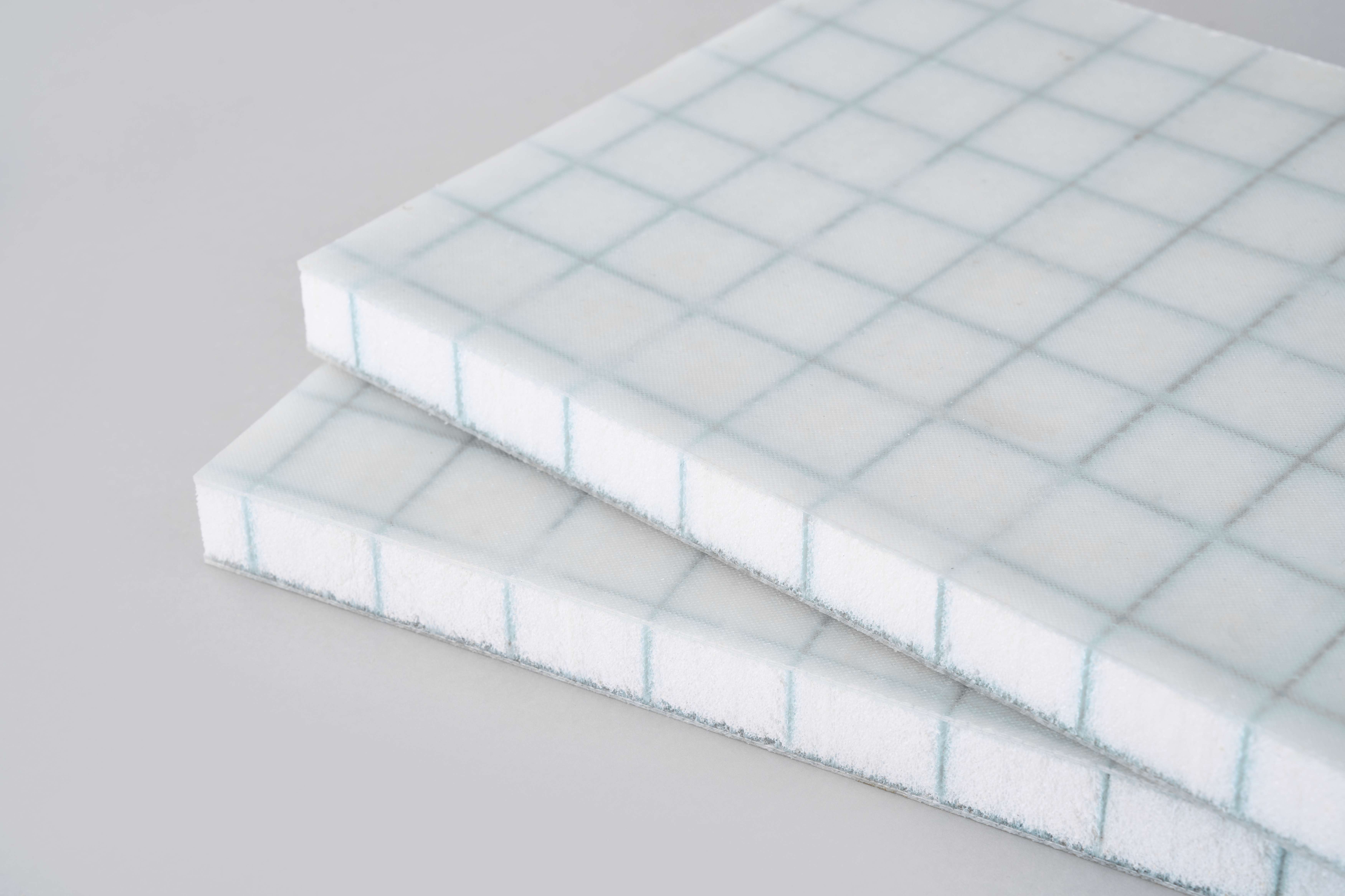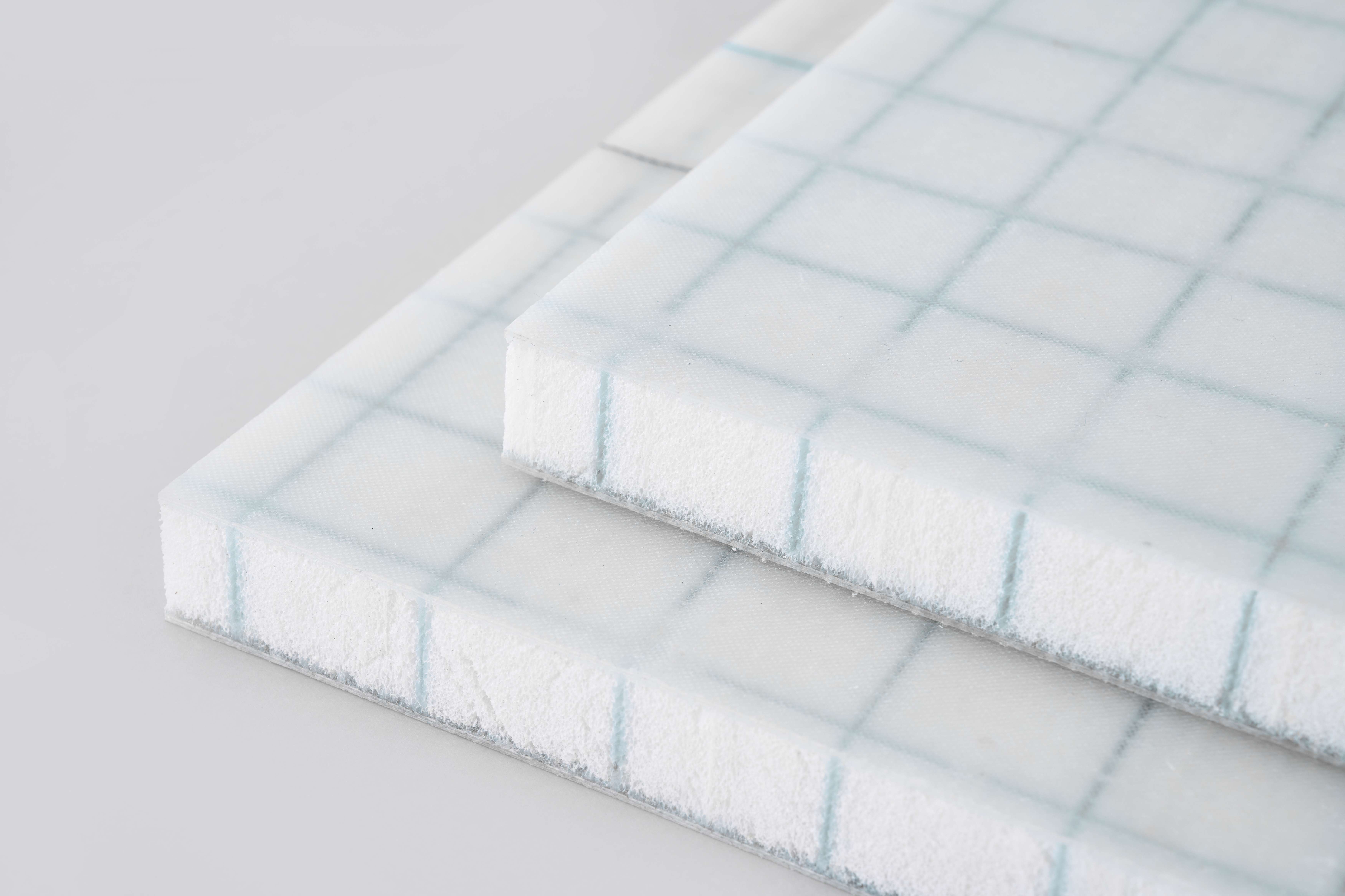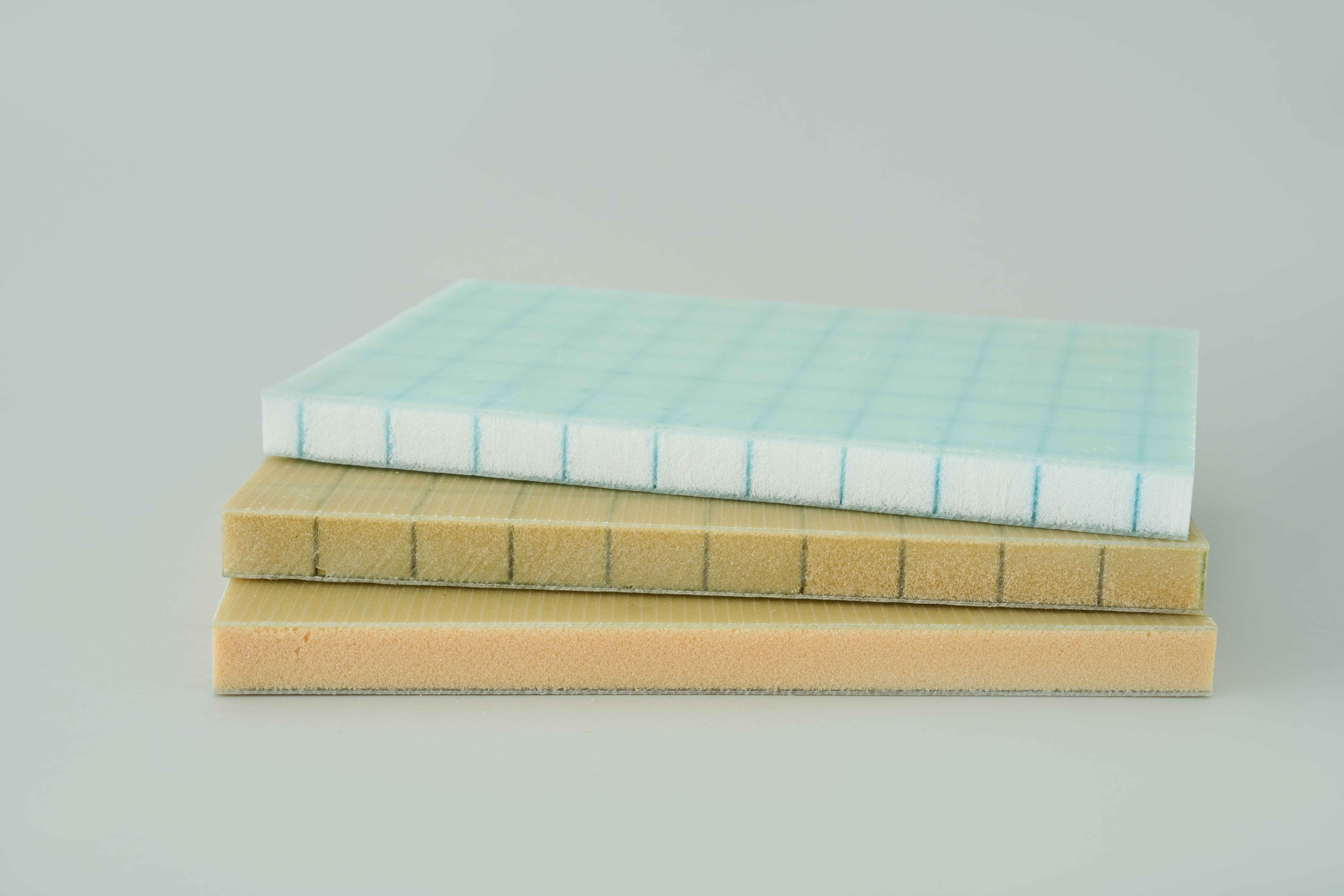 在以Vicell泡沫为芯材制作夹层结构时,通常采用层合工艺。加压和加热时,建议使用厚度控制垫块,特别是当固化在模压模具中进行时。以免超出泡沫弹性蠕变下限。 为了将泡沫夹层结构构件推广到大载荷、轻质结构,一个重要途径是增加其剪切强度。因为泡沫芯材的性能的提高往往是通过增加密度来实现,因此必须寻找一个能将增强纤维和泡沫芯材相互结合的途径。一个结构上非常成功的方法是加上45度向贯穿的腹向结构,大小尺寸可根据应力要求调整。泡沫芯材和蒙皮之间的良好的界面性能对提高结构冲击损伤性能有所帮助。可以用Z方向纤维增强材料提高蒙皮和泡沫芯材之间的界面性能。研究和应用表明,针刺和缝纫是提高泡沫芯材性能的有效途径。
